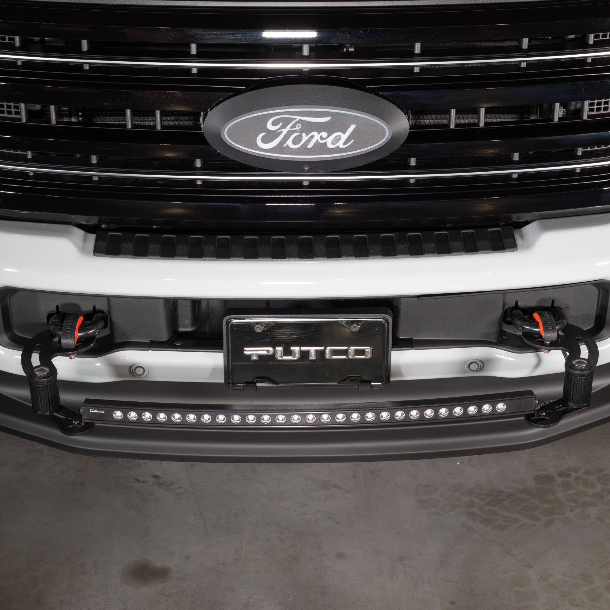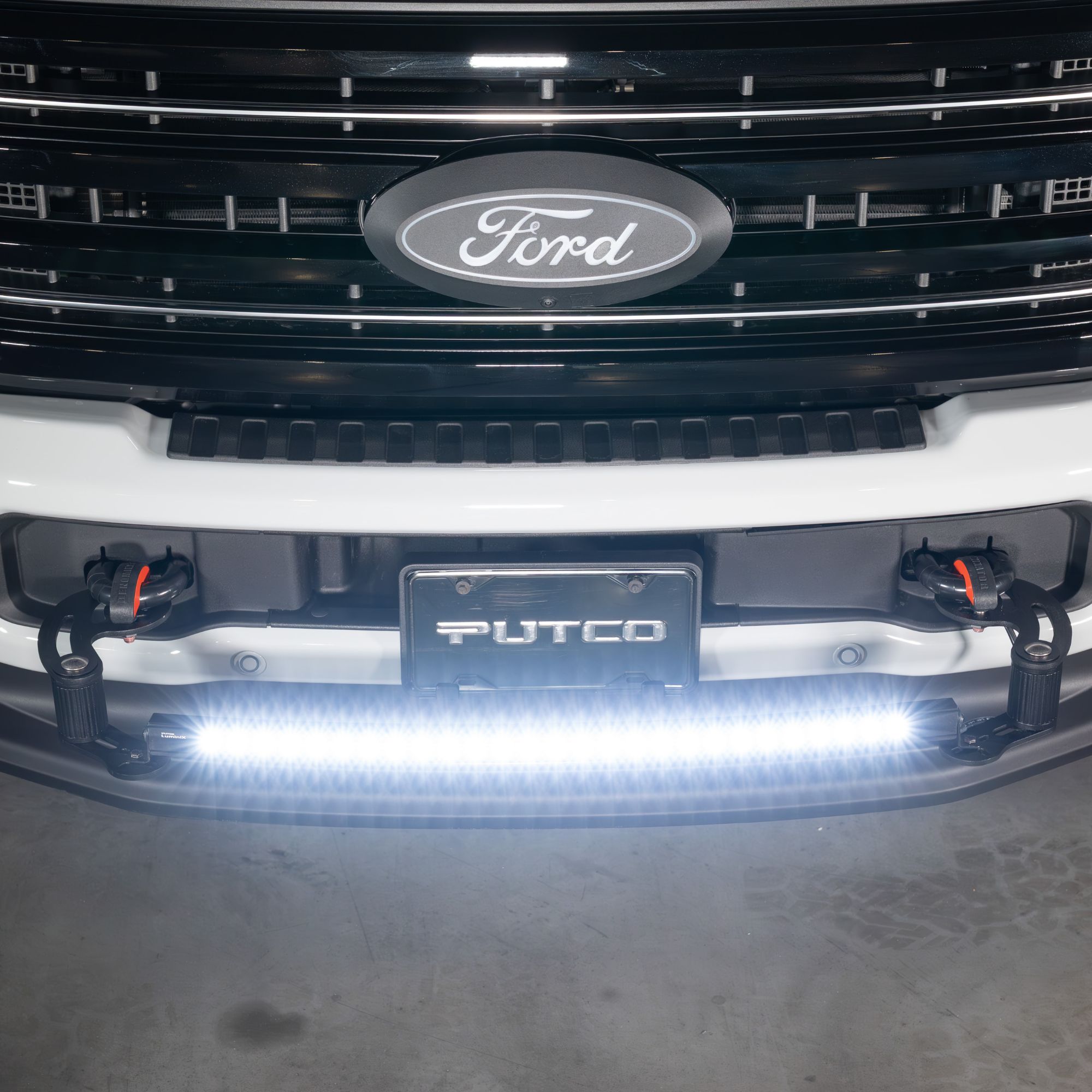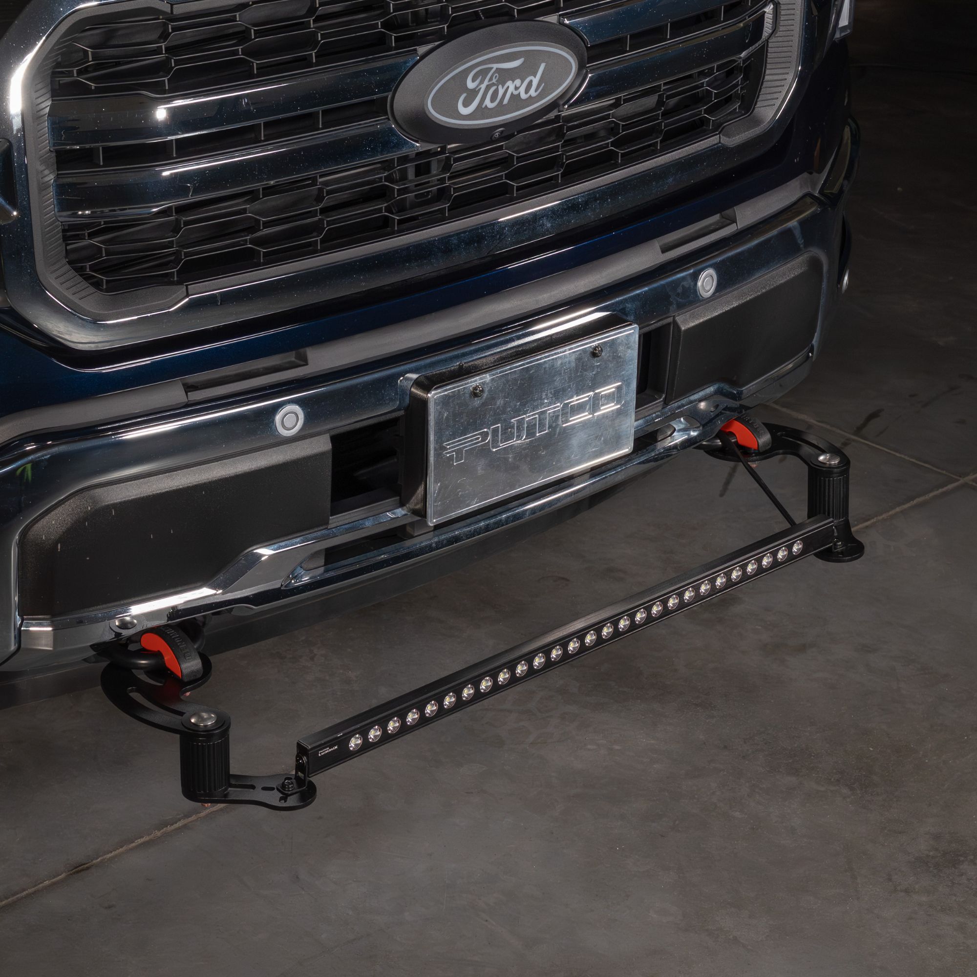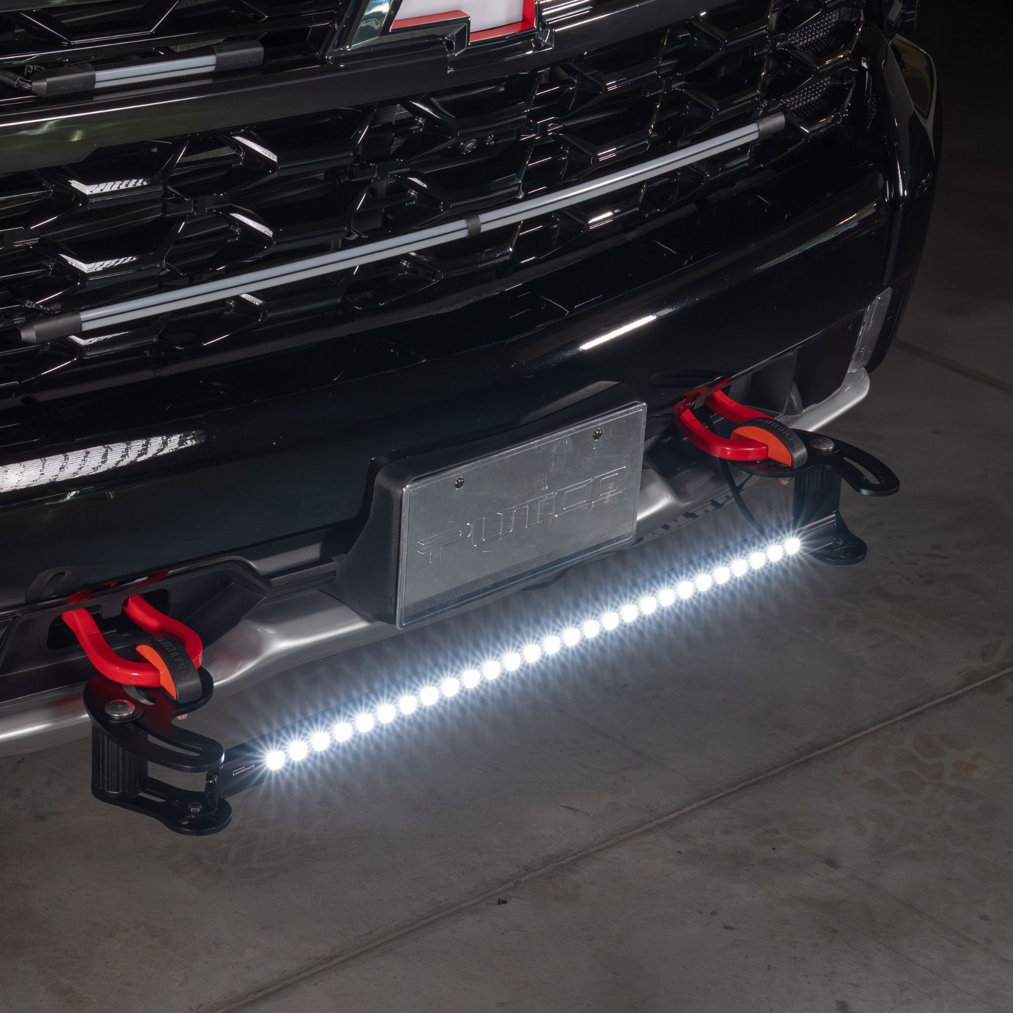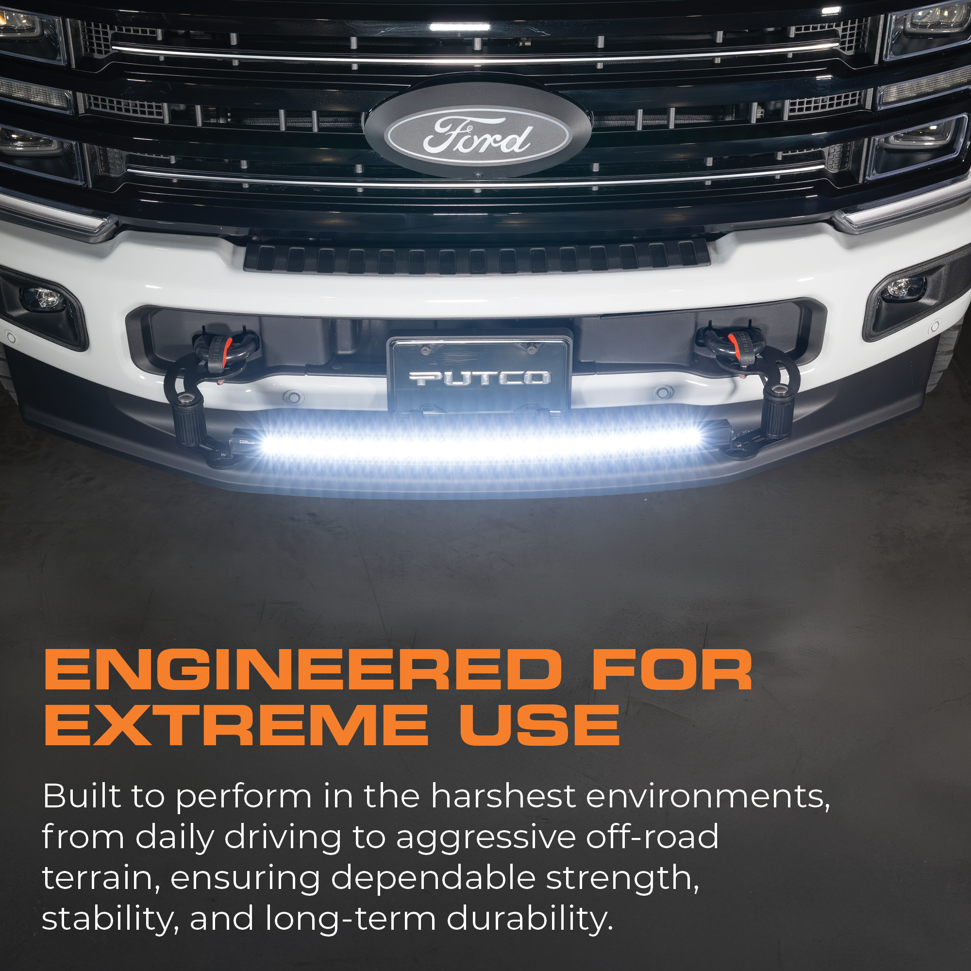 The Putco Denominator™ is a modular, vehicle-specific front bumper light bar mount system for trucks and SUVs that need a clean, secure installation with no modification. Designed as a precision-fit truck tow hook clamp kit, it matches factory tow hook geometry for a secure, quick-install platform for auxiliary lighting.