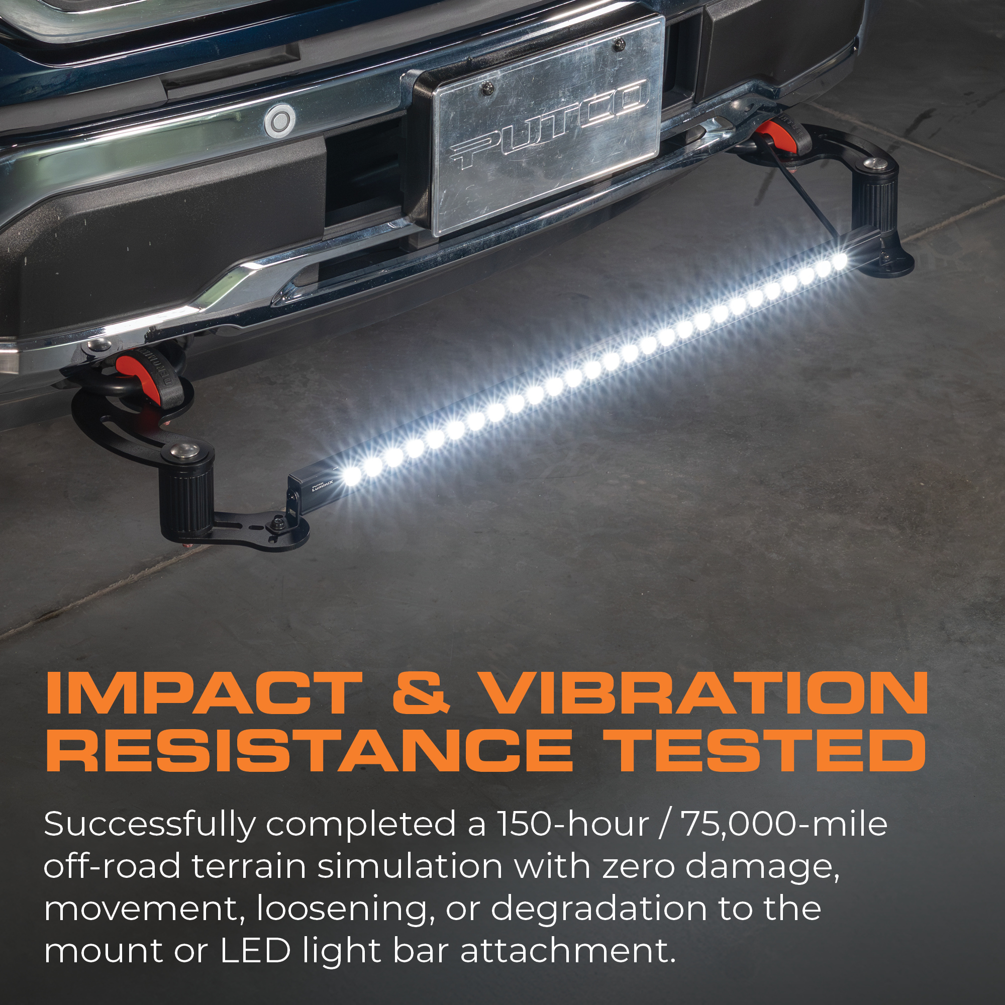 • Impact & Vibration Resistance Tested: Zero damage, movement, loosening, or wear to any parts during a 150-hour/75,000-mile off-road terrain simulation.