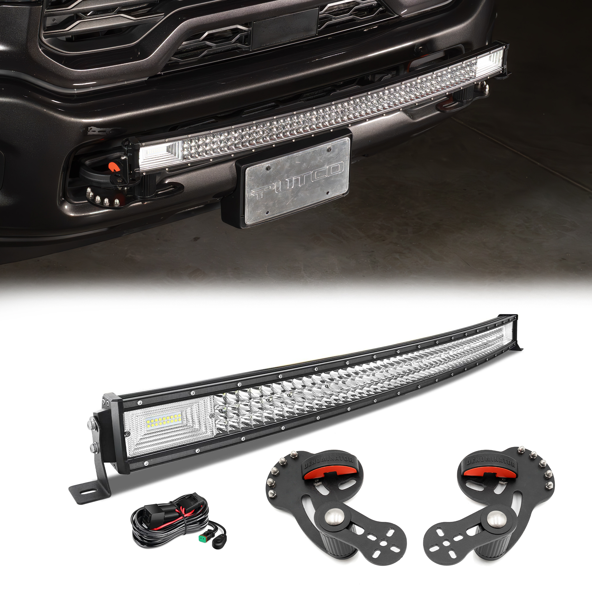 Built to withstand the harshest conditions, the LED bar features a one-piece die-cast aluminum housing, efficient heat dissipation, and an IP67 waterproof rating to handle rain, mud, and dust. Compatible with 12V-30V truck systems, it comes with an easy-to-install wiring harness and heavy-duty mounting brackets, making setup fast and secure. Rugged, reliable, and powerful, this LED light bar paired with the Denominator™ tow hook mount is a must-have, easy upgrade for heavy-duty/light-duty truck owners who demand performance and durability on and off the road.