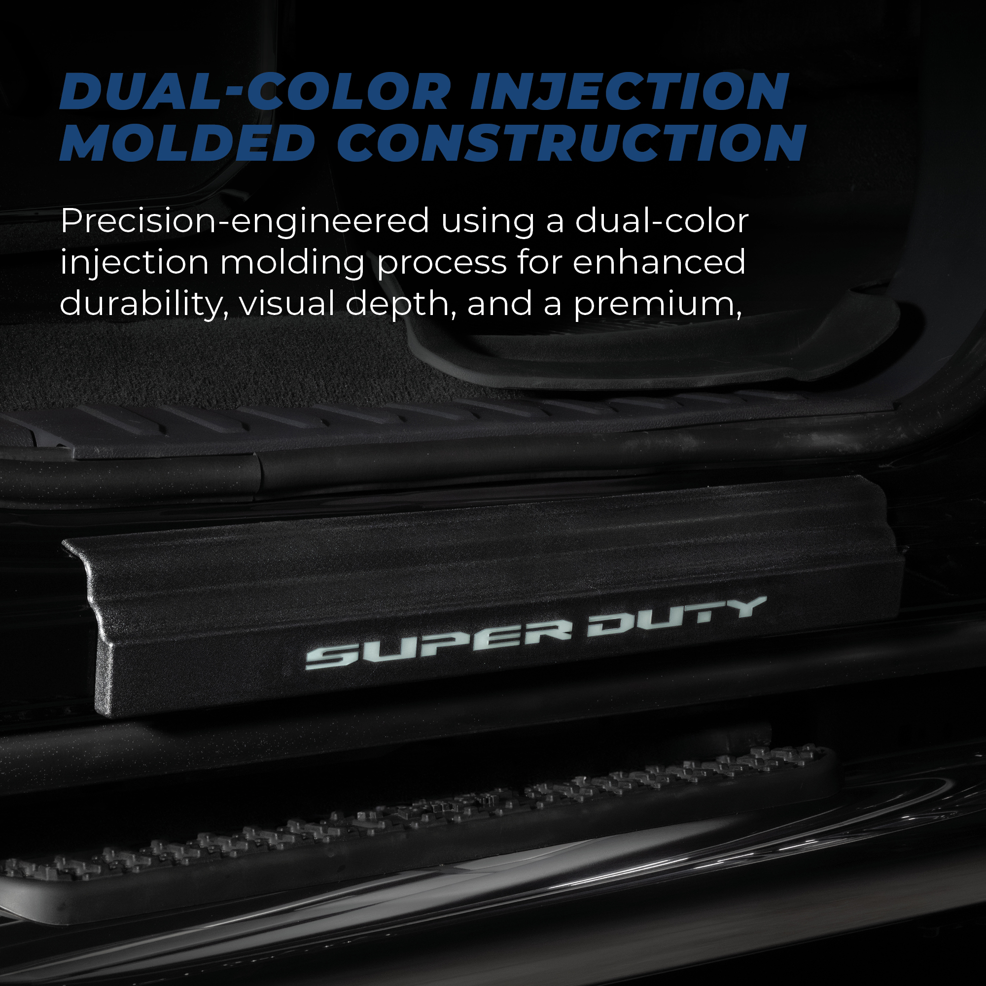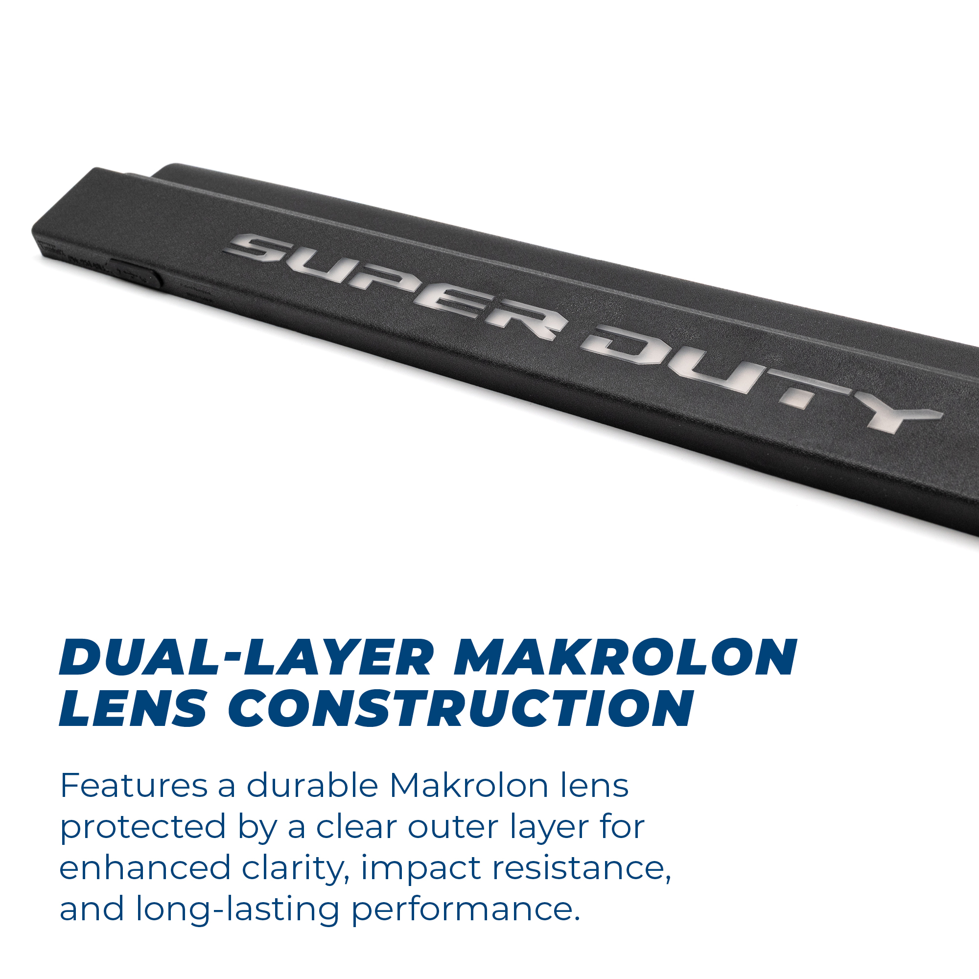 As the first and only Ford-licensed battery-powered LED door sill, the Putco Luminix® LED Door Sill is an innovative upgrade that delivers trusted quality and a perfect OEM-inspired fit. The durable Makrolon lens protects the LEDs while maintaining crisp light output, and the 6500K color temperature produces a clean, subtle white glow for a modern look every time you open the door.