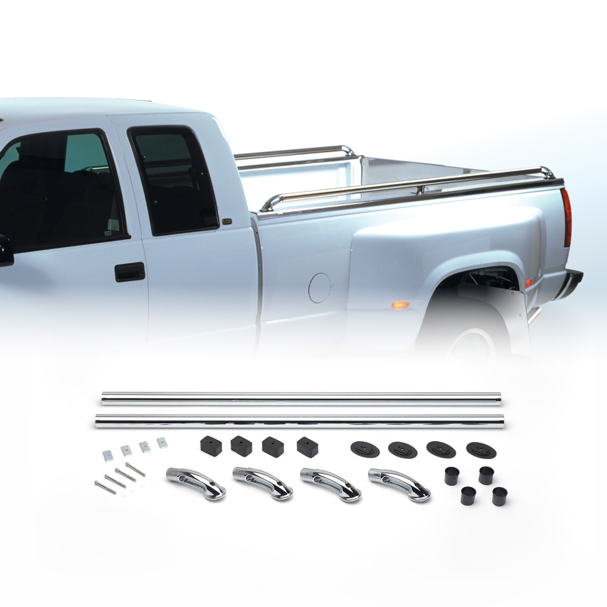 The die-cast ends exhibit exceptional strength and aesthetics. They effortlessly mount into your pickup stake pocket holes without the need for drilling within minutes. Manufactured by Putco in Des Moines, Iowa.