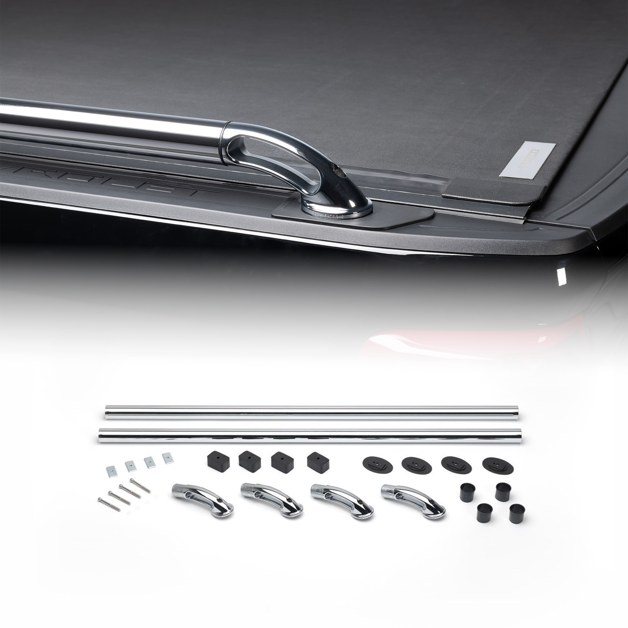 Designed for durability and a refined aesthetic, these rails are composed of premium stainless steel to resist rust and corrosion while maintaining a mirror-like finish. The custom-fit installation ensures a seamless appearance, while the robust construction provides additional tie-down points for secure cargo handling.