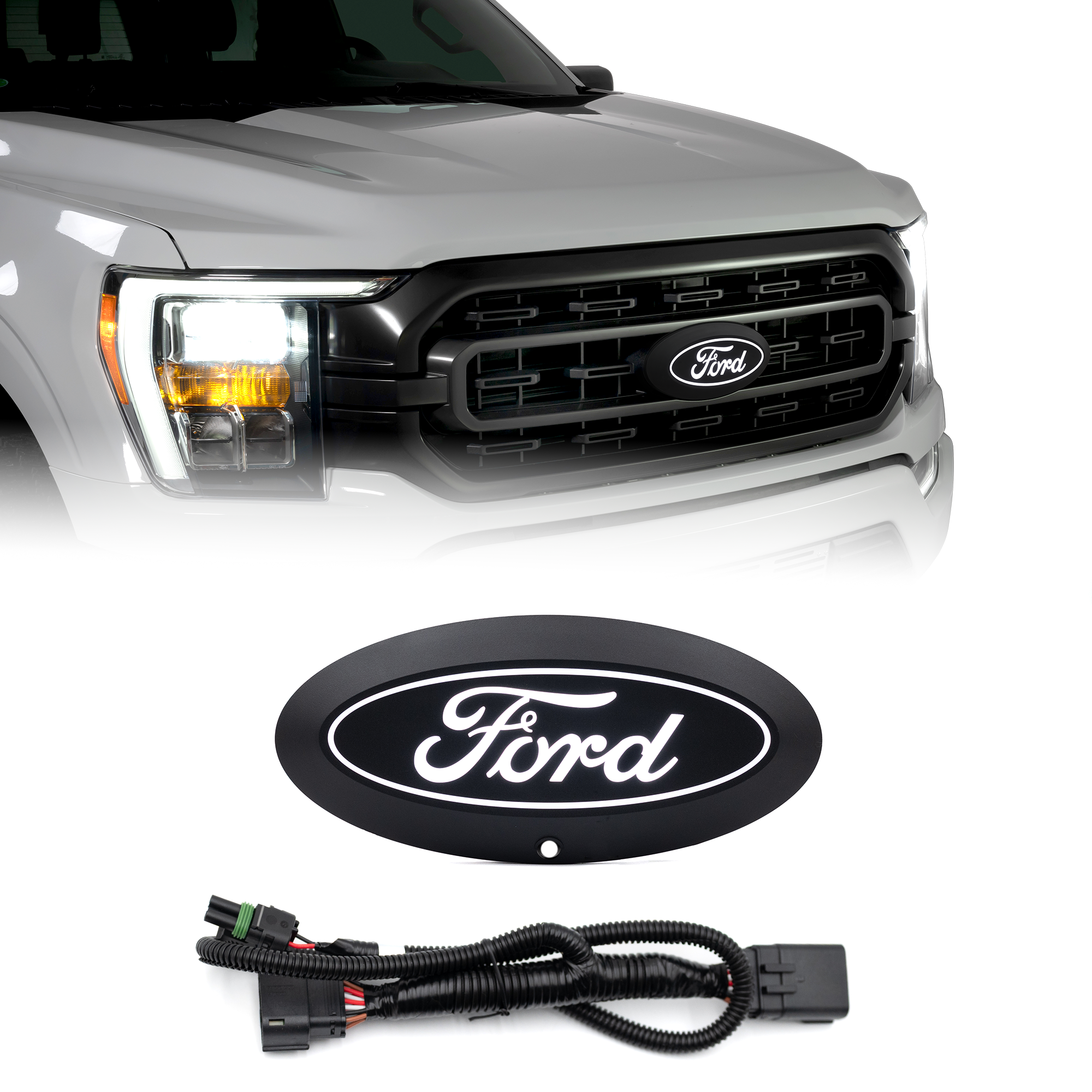 Enhance the visual appeal of your Ford truck by replacing its standard blue factory front grille emblem with the newly introduced illuminated Ford LED oval emblem.