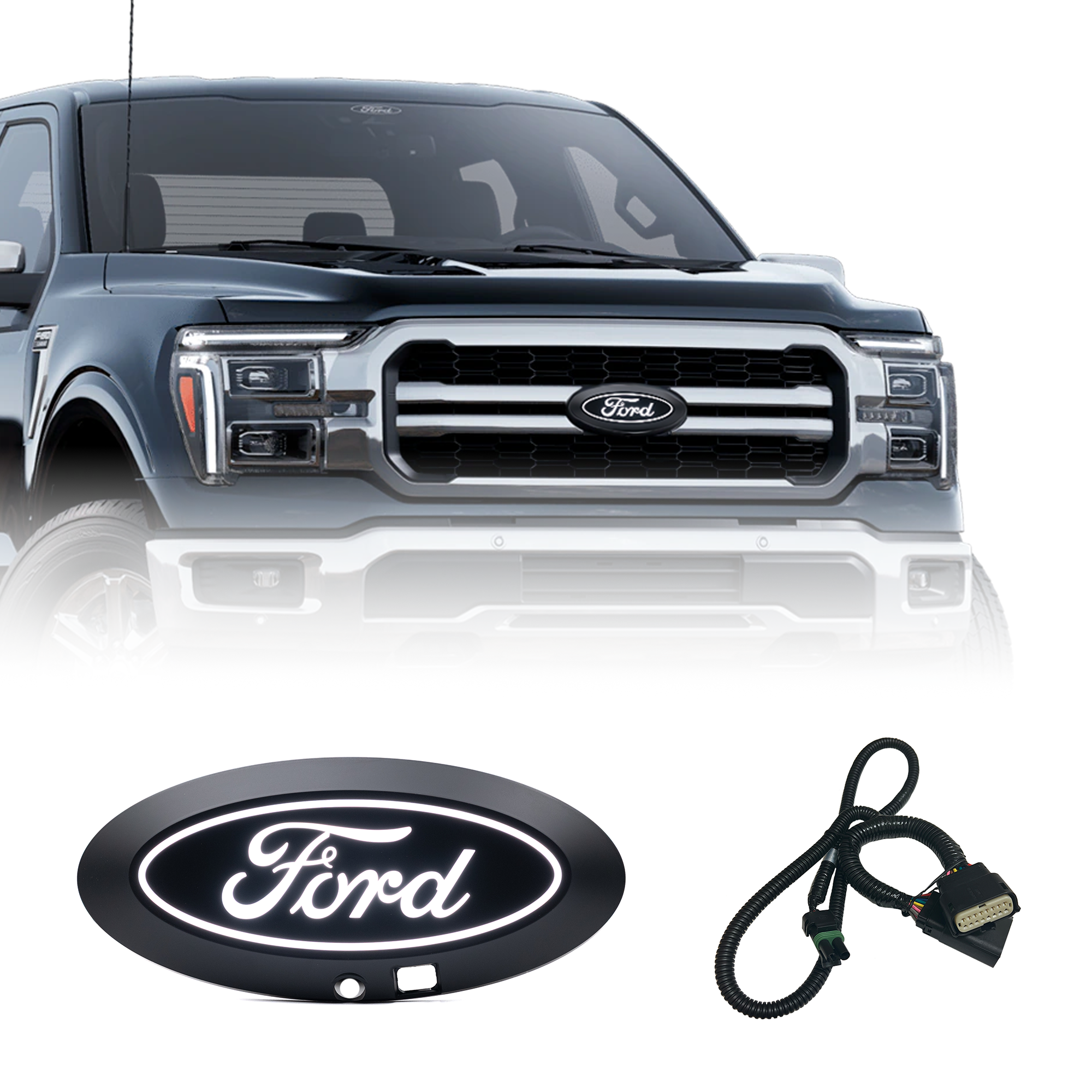 Enhance the visual appeal of your Ford truck by replacing its standard blue factory front grille emblem with the newly introduced illuminated Ford LED oval emblem.