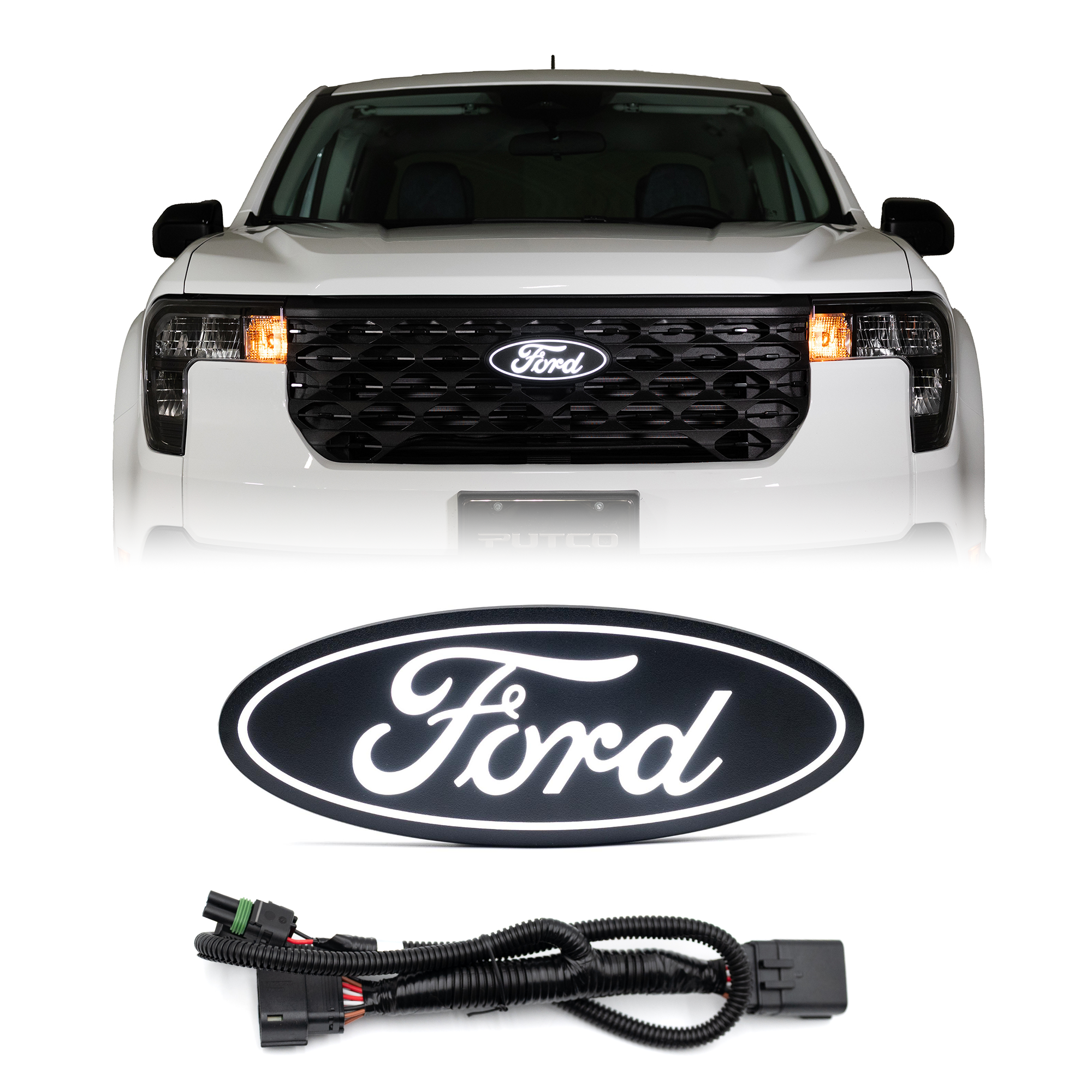 The Luminix® Ford LED Emblem is where Ford heritage meets modern style. This officially licensed Ford product is designed as a direct replacement for the Ford F-150, Super Duty, Maverick, Ranger, Explorer, and Expedition models. Built with advanced automotive LED technology, each emblem delivers high-intensity illumination through official “Ford” script, complementing the vehicle’s factory lighting assemblies and providing a clearly legible logo, whether the product is “On” or “Off”. Putco manufactures LED emblems for both the grille and tailgate. Putco’s grille emblems provide SAE/DOT compliant illumination at a crisp 6,500K white color temperature. Tailgate emblems provide our signature MEGA-RED appearance designed to match factory tail lamps.