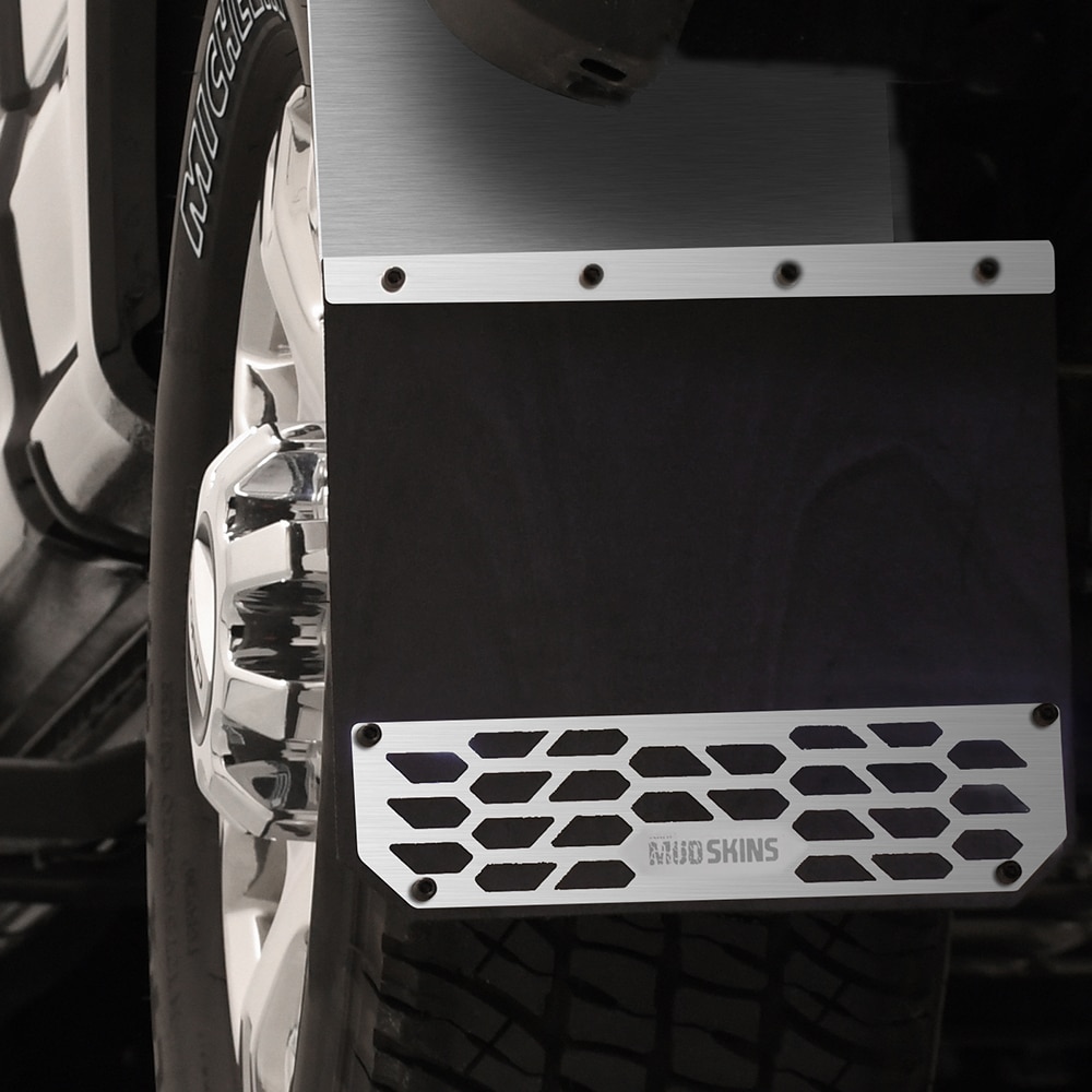 Protect your fenders from debris with Putco stainless steel Hex mud skins. These units offer the perfect blend of style and protection for your truck, shielding it from rocks, mud, snow, and anything the elements can throw at you and your ride. Choose from a front pair, rear pair, or a complete set of mud flaps.