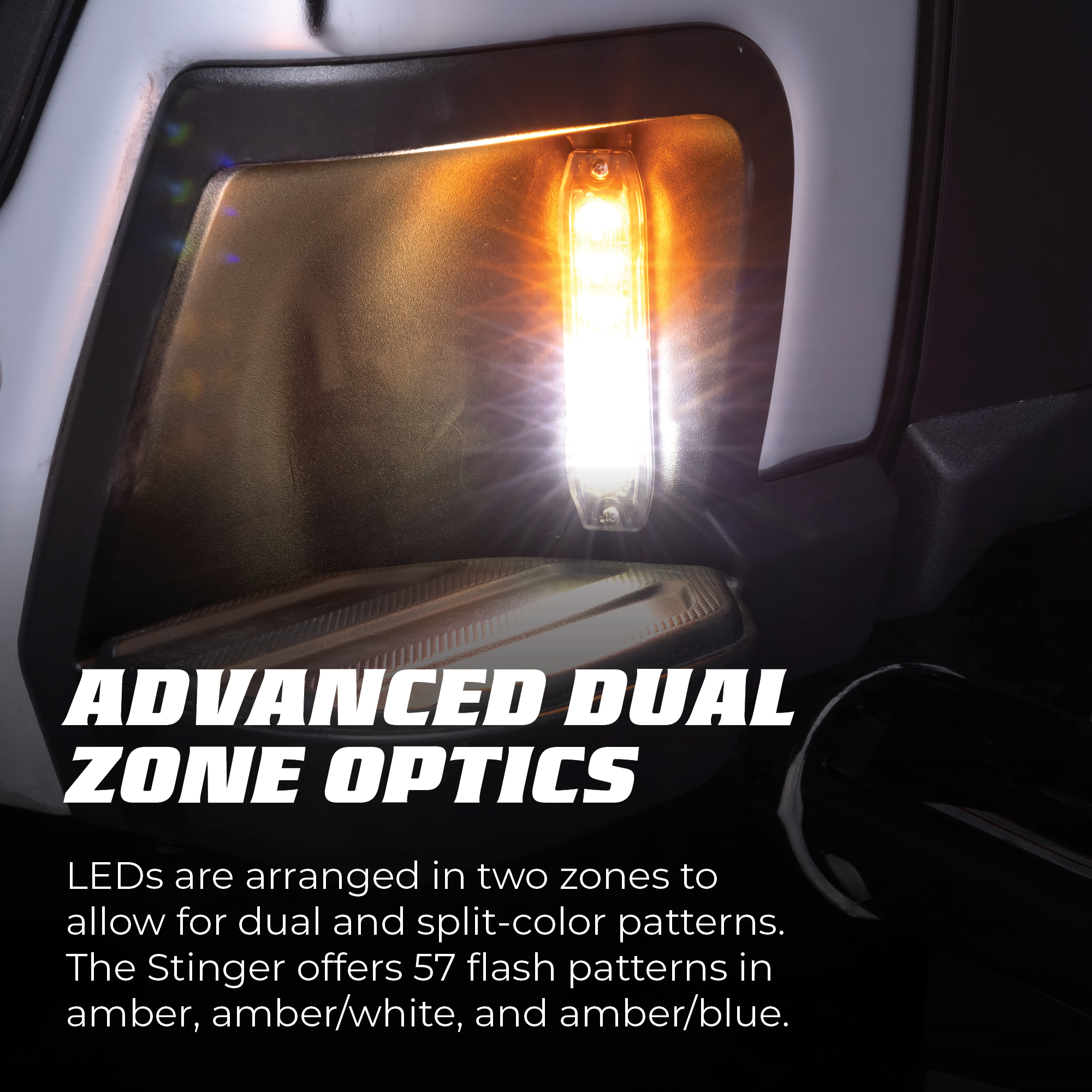 Dual Zone Optics: Programmable dual-zone strobe color control for best-in-class visibility day and night.