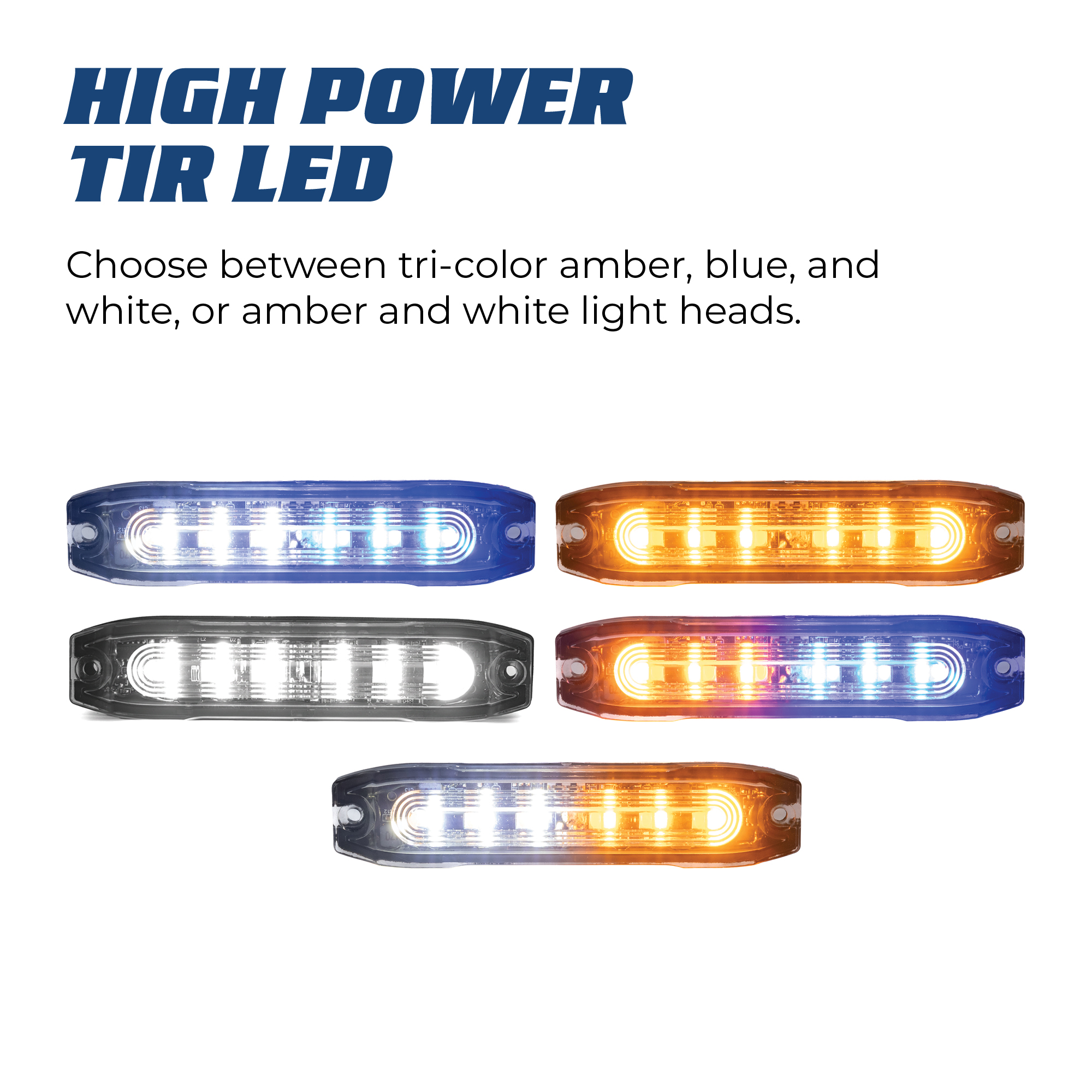 High-Power TIR LEDs: Choose between tri-color amber, blue, and white, or amber and white light heads.