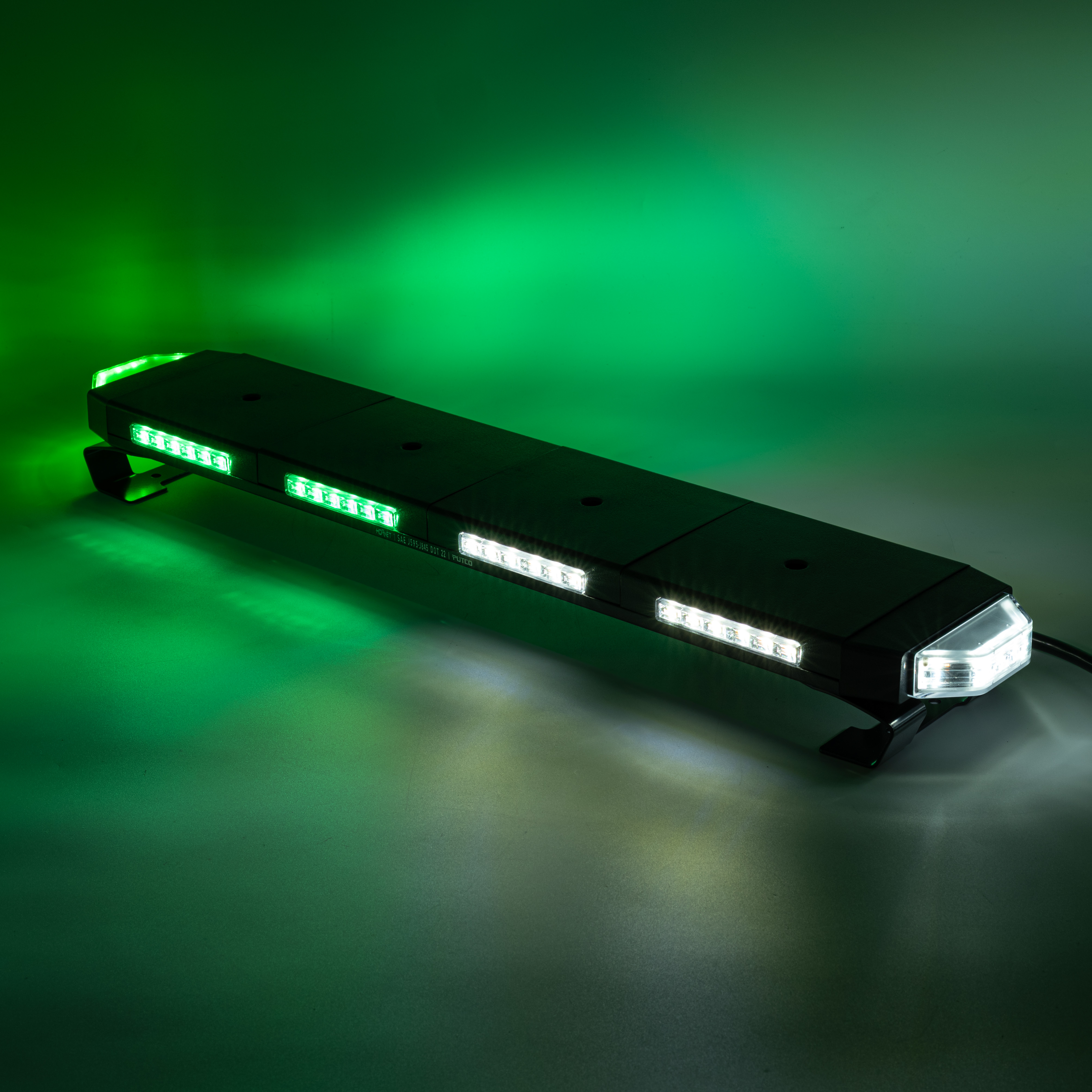 Proudly designed in Des Moines, Iowa, the Green Hornet combines American-made strength with cutting-edge LED technology. With its bold green presence and versatile white and amber configurations, this light bar is the go-to choice for fleets that demand standout safety lighting without compromise.