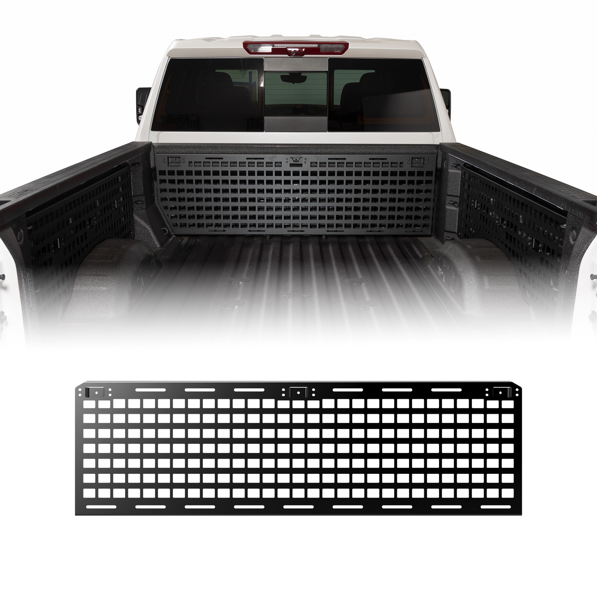 • Complete Coverage: Outfit your truck with MOLLE panels for the front bulkhead, driver side, passenger side, and tailgate. Choose individual panels or a complete kit for full bed organization and protection.