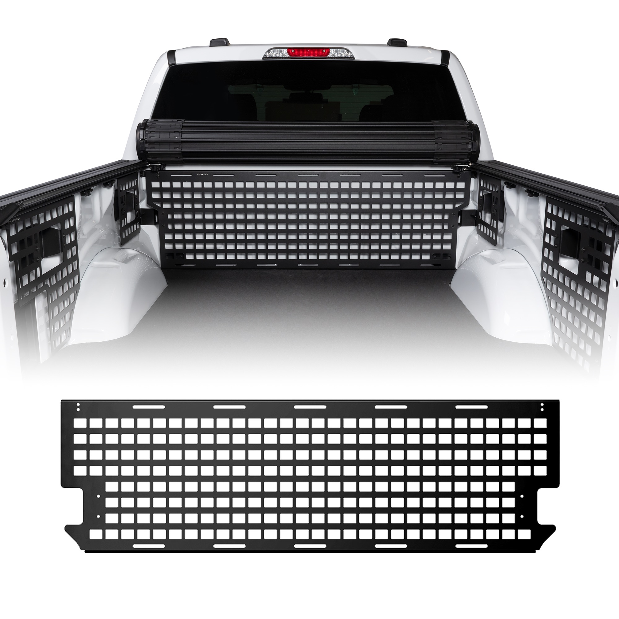Secure your truck-bed cargo with Putco’s MOLLE Truck Bed Panels – a premium modular storage system for your truck bed. Designed from genuine OEM CAD, Putco’s MOLLE system is ideal for keeping your gear organized and accessible throughout your journey – whether you’re heading to the worksite, on an overland excursion, tailgating, or running everyday errands. Available for the bulkhead, driver side, passenger side, tailgate, or a full kit. Putco offers rack configurations ranging from individual panels to full systems. Putco MOLLE Panels provide versatile mounting options for your gear, tools, and other essentials, keeping them protected and within reach.