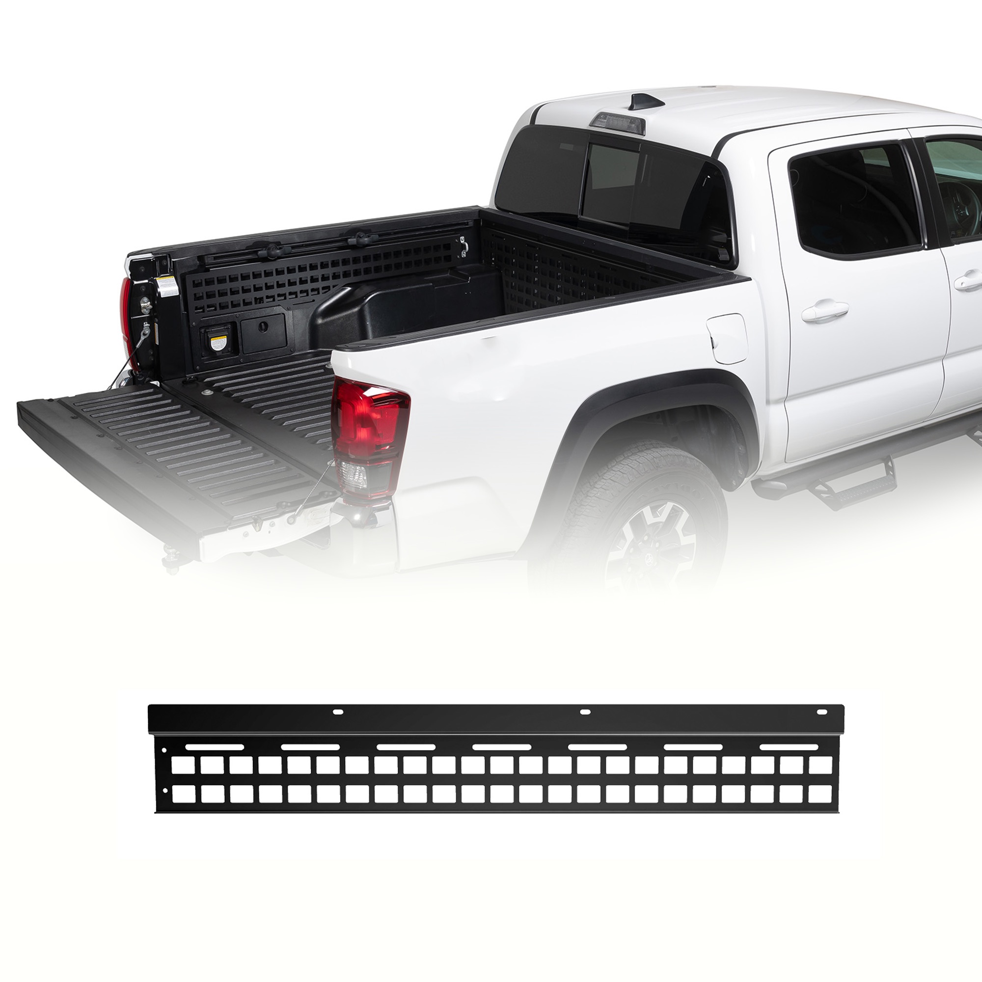 • Complete Coverage: Outfit your truck with MOLLE panels for the front bulkhead, driver side, passenger side, and tailgate. Choose individual panels or a complete kit for full bed organization and protection.