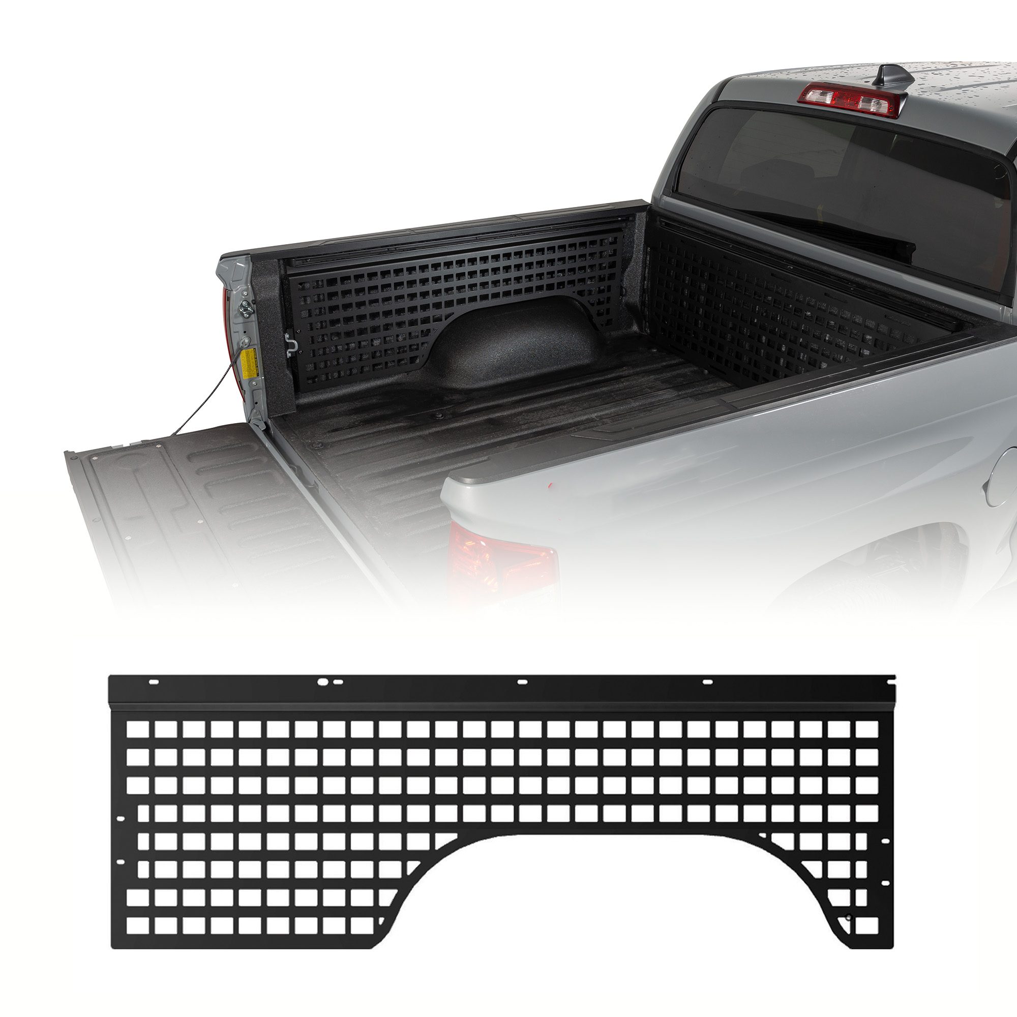 • Complete Coverage: Outfit your truck with MOLLE panels for the front bulkhead, driver side, passenger side, and tailgate. Choose individual panels or a complete kit for full bed organization and protection.